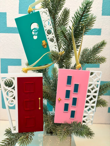 Mid Century Modern Pink Door Ornament