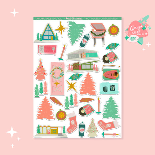 Mid Century Modern Christmas Art Sticker Set