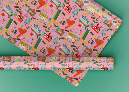 • Christmas Motel Signs Specialty Art Wrapping Paper One of a Kind