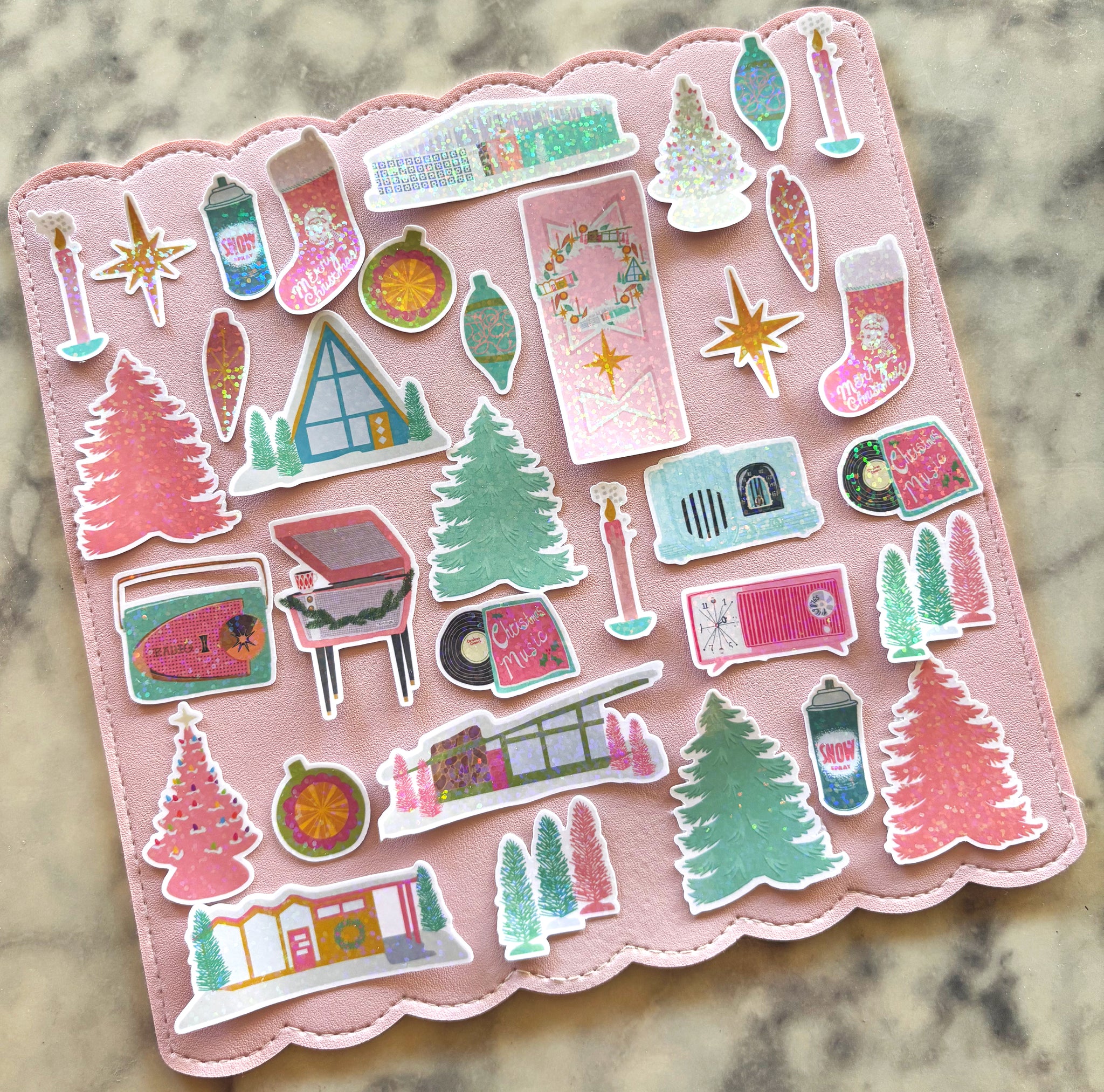 If you love pink Christmas, vintage holiday decor, or Mid-Century Modern design, these stickers are the perfect way to add some groovy holiday cheer!