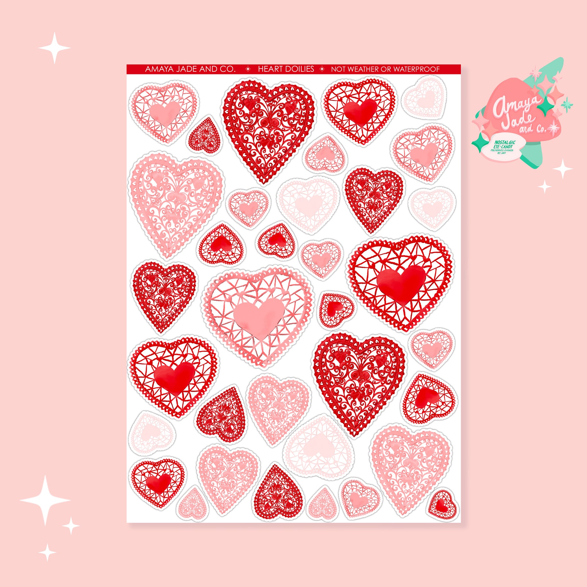 Our "Heart Doilies" Holographic Sticker Pack from Amaya Jade and Co. brings that sweet, childhood nostalgia back, but with a grown-up sparkle! This collection features intricate heart shapes inspired by delicate lace doilies, combining classic romance with a mesmerizing holographic finish.